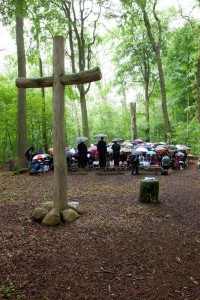 Schon einmal hatte es einen solchen Gottesdienst auf dem RuheForst an der Flensburger Förde gegeben. Im zurückliegenden Jahr 2011, und zwar am 3. Juli, fand dort nicht nur ein Waldgottesdienst mit Aufnahme der Konfirmanden statt, sondern im Anschluss daran auch eine zweifache Taufe, natürlich ebenfalls, wie in diesem Jahr, mit Ostsee-Wasser. Auch damals waren die Witterungsbedingungen eher widrig, insbesondere wegen des vor einem Jahr vorherrschenden starken Windes.